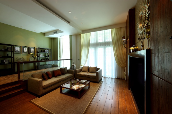 此例空间中 别墅新中式装修风格 的设计主旨,运用新潮风范的吊顶等装饰,调动室内清逸的空间层次;同时配合其他丰富的...