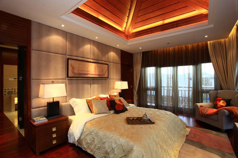 别墅装修中式卧室冲逸而温馨,在典雅的墙面和木地板铺装中,舒适而高雅,自然而惬意。