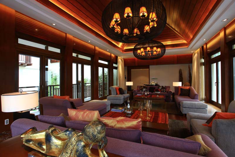 移步换景,当我们回望的时候会发现尖顶结构屋顶采用自然的木质屋顶,带来贴近自然的体验,布艺沙发,和较多的木作都让人感觉到融入森来一般。一切又是如此冲逸而恬淡。给人无限的翛然享受,透过慈祥而和蔼的佛像昭示着备考青山环保绿水的自在和个中智慧。