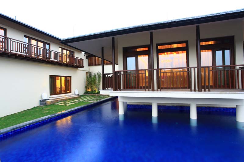 露台在三面大落地窗的围合下,可以尽情感受拥抱青山绿水的感觉。这样的别墅设计说明了为什么钟爱通透的玻璃窗,更说体现了别墅的环保理念。