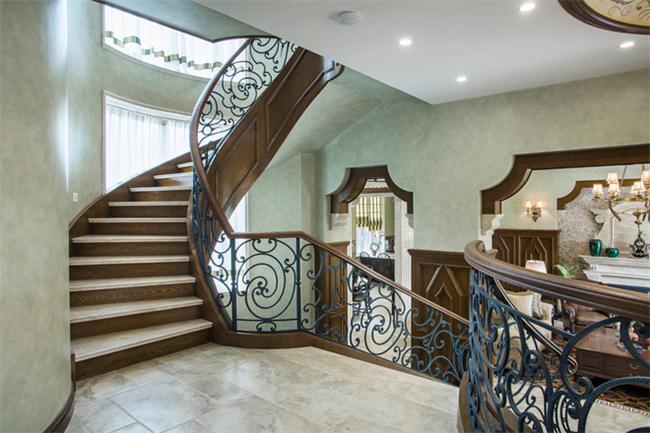 从楼梯之上俯瞰设计效果,我们会发现一种类以于一种欧洲艺术殿堂的形态美,这是别墅装修设计创意的特别展现。