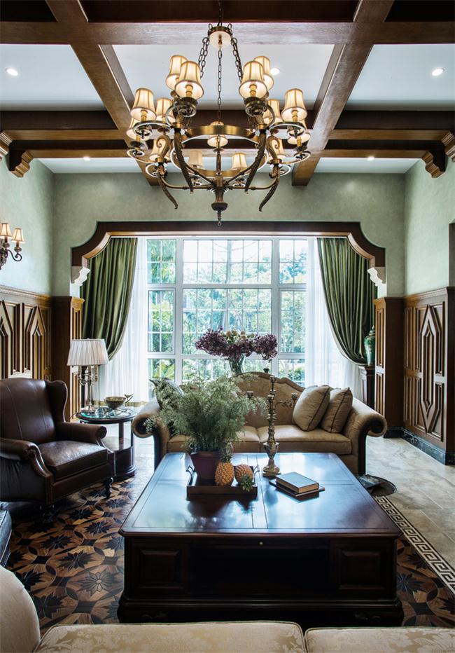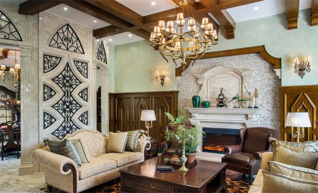 美式风格独栋别墅设计可以将客厅突出轻松自由的景观效果,因此选用家庭装饰元素是特别考验别墅设计专业性。