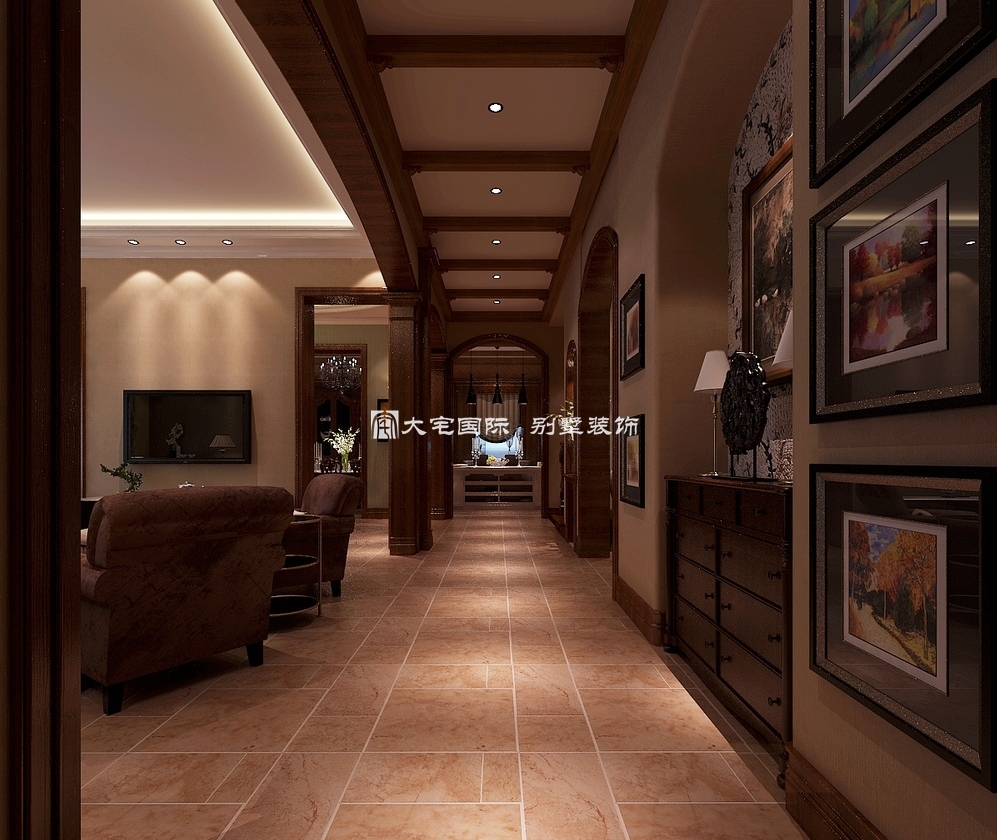 在美式风格别墅装修中,使用咖啡色来装点房间,不仅仅起到塑造空间环境的作用, 从上面的图中我们就可以发现,地面是不是好像撒了咖啡豆一样,一股咖啡种植园的浓香扑鼻而来。