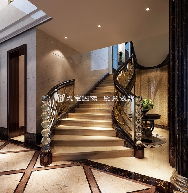 别墅装修中楼梯要表达出经典之美,可以用功于造型上。每一种的造型都会展现出各自的特点,经典的楼梯永远是浑然天成,集大成之作。