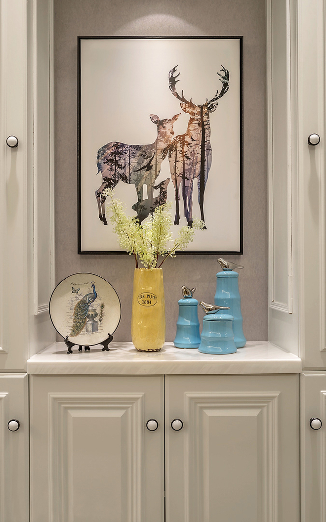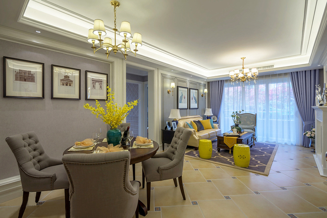 运用安静色调以舒缓节奏将古典欧式元素融合,婀娜多姿的插花将盎然生机引入客厅中。细节处配饰彰显着经典品质。
