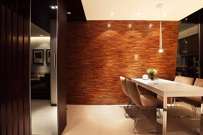 餐厅中点光源与功能区域充分相关,展现了当代西洋别墅设计风格中的节制笔触与恰到好处的装饰。营造良好的别墅装饰享受.