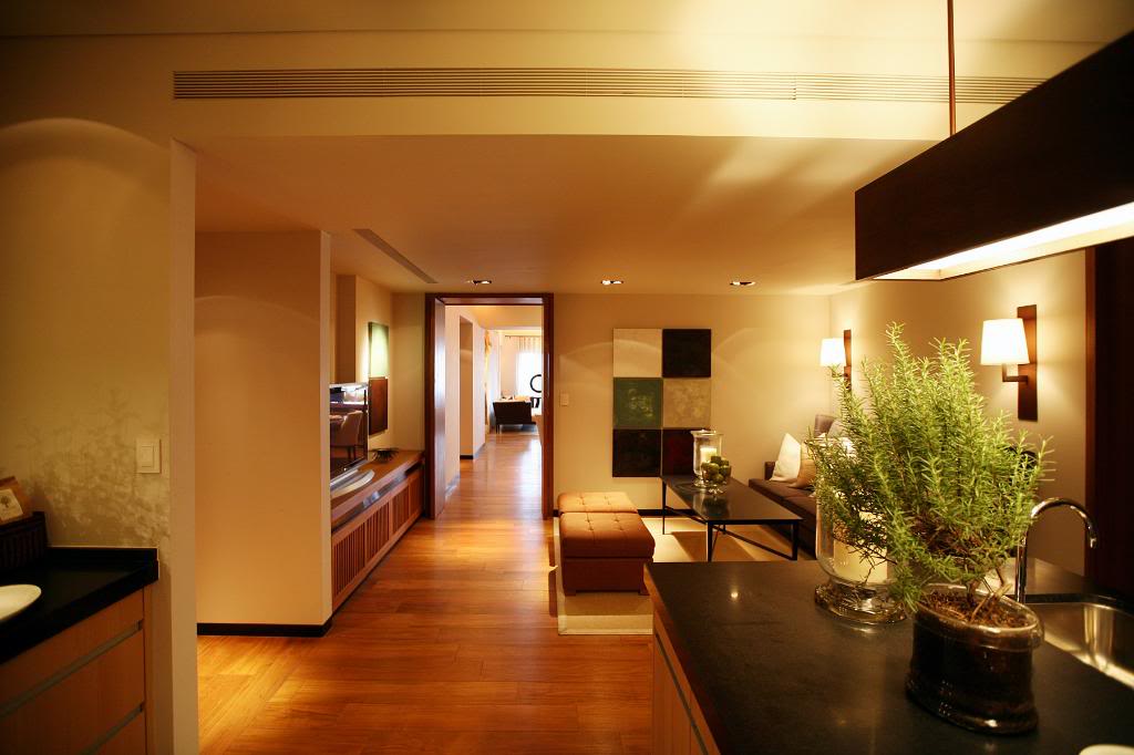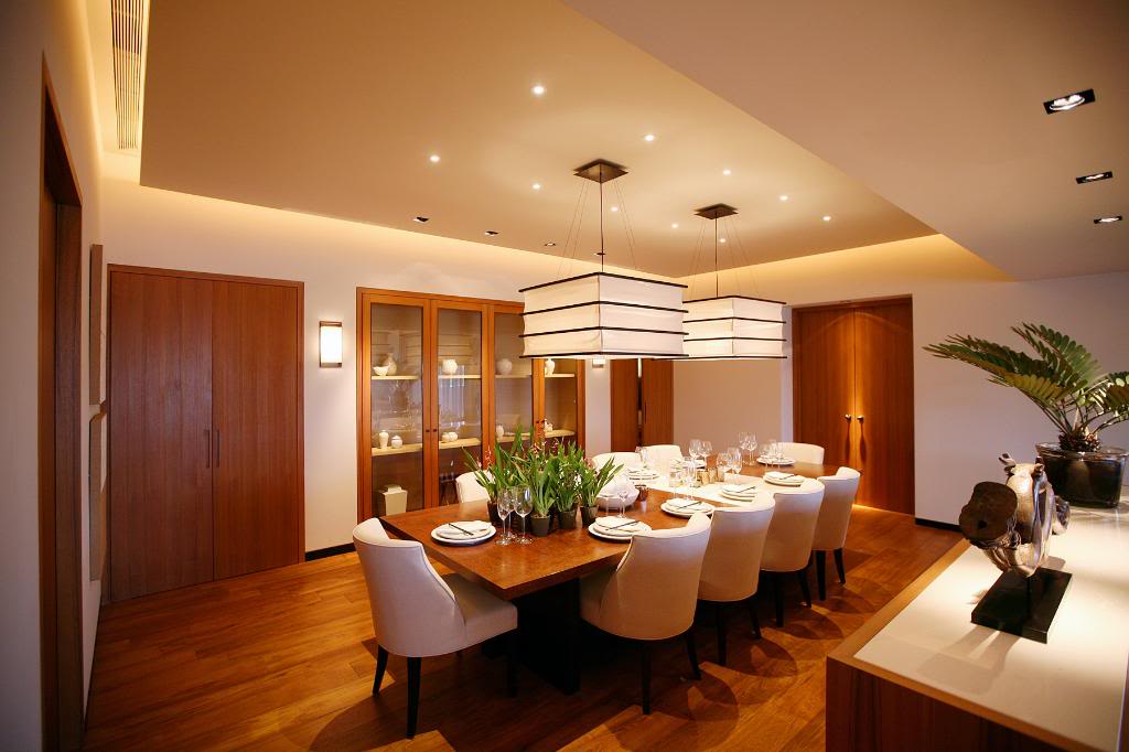注重功能的区分,保持了空间通透视觉,壁橱,垭口墙垛,以及吊灯、餐桌、吊顶的笔直线条,与干练中带着浅浅的清新,冲逸之至。