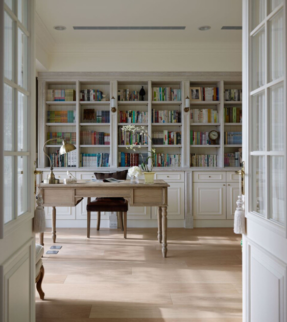 新别墅建筑设计书房,通过古典文化艺术手段,结合空间布局的独特性,呈现古典艺术的无尚魅力,在别墅装修工作中,让空间得意全面的功能实现,和艺术品味享受的提升来完善装修,并始终围绕这一主题展开构图思路。