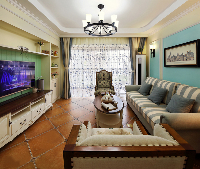彩色的装饰配合布艺运用的空间温馨而舒适