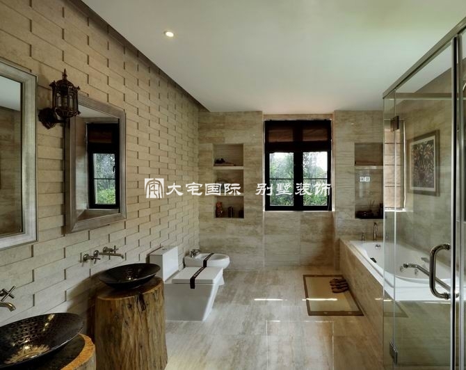 东南亚风格别墅设计主卫采用了石材与镜子的设计为其增加了变化。奢华既非繁杂的雕饰,更非金碧辉煌的装饰,只要充分地运用材质的特点,现代的设计也可以传达视觉与舒适的平衡。