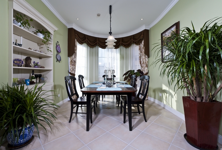 从这张别墅装修案例中,我们可以看出别墅客厅被绿色所包裹,展现出别墅主人热爱自然,向往自由的品味。绿植点缀其间,更能带来清新的气息,使客人身处其中,也不觉得单调。