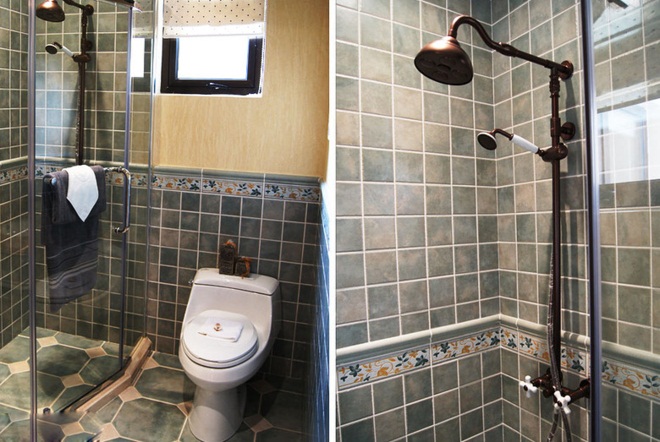 淋浴间设计主要一沉稳主要格调,在设计的同时注意将田园元素嵌入其中,便塑造出了有着混搭意味的经典别墅卫生间设计。