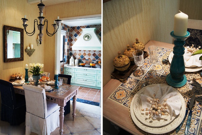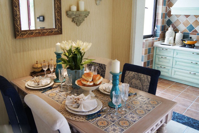 地中海风格经典别墅装修后与田园式的设计思路互相如何,便可以带来一种更新的体验,餐厅设计因为地中海风格而使人感受到海的清新,因田园般的视觉感受,而歆享一种花团锦簇的绚丽与多彩。