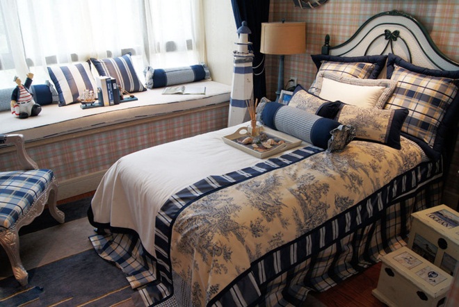 地中海风格的别墅卧室设计,通过华美家具家装,清新素雅的古典家居的古旧风,营造出与户主高雅的气质、品味相得益彰的浓郁艺术氛围。