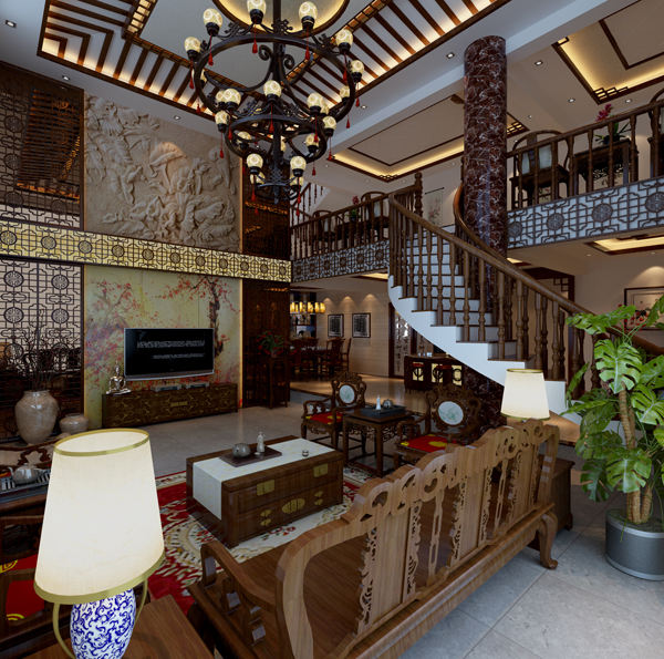 中式别墅装修华贵中蕴淡雅、炫丽中蕴平静