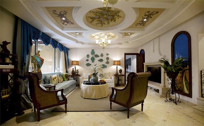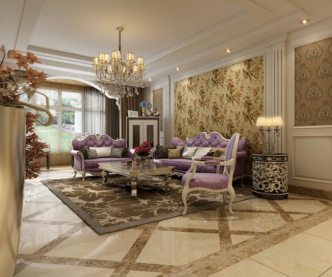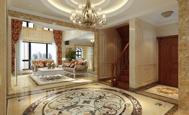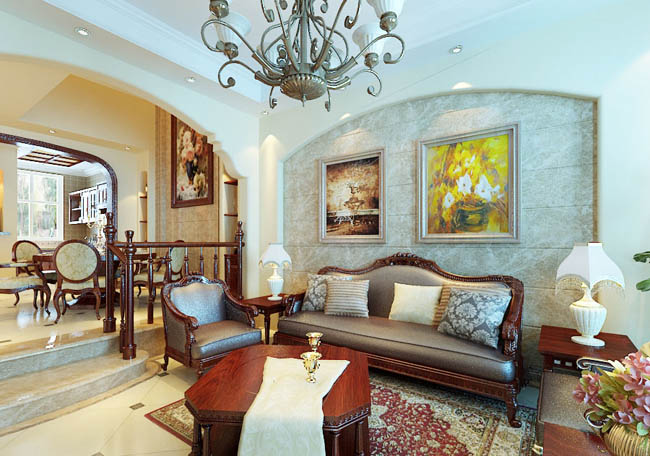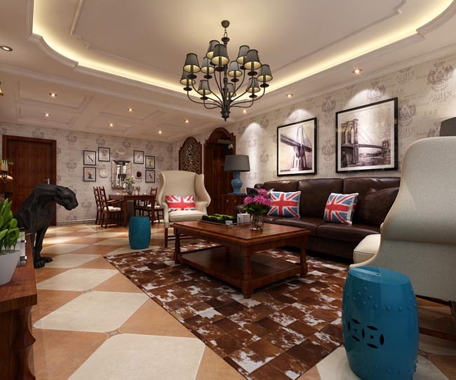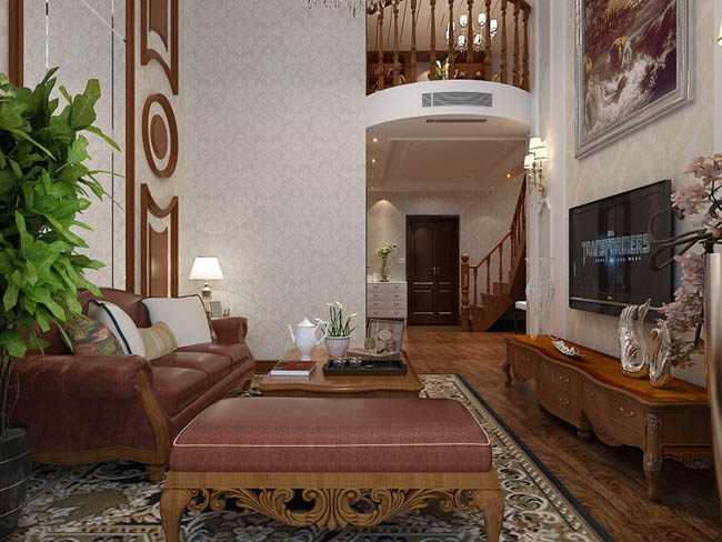 宽大、舒适的美式风格独栋别墅客厅设计图