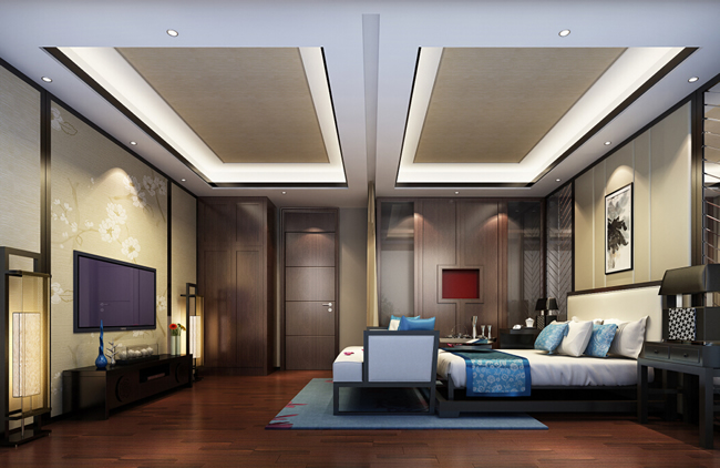 别墅卧室设计效果图中的中式韵味